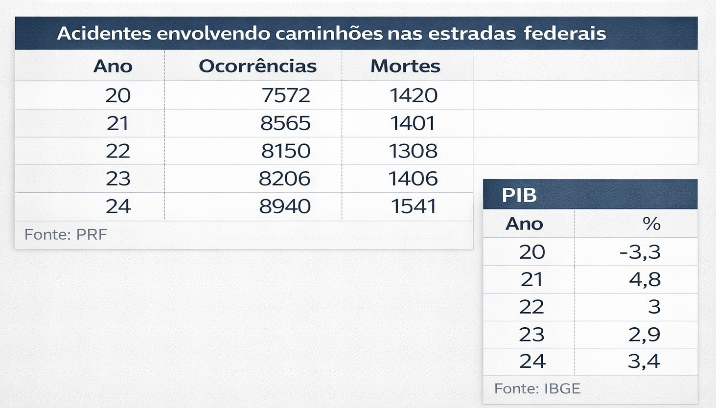 Outro fator apontado pela PRF é o desempenho da economia. Após a forte retração causada pela pandemia de covid-19, o Produto Interno Bruto (PIB) voltou a crescer nos anos seguintes: 4,8% em 2022, 3,0% em 2023, 3,2% em 2023 e 3,4% em 2024. “Com a melhora da economia, há aumento do fluxo de veículos e da movimentação de cargas. Entendemos que isso também contribui para o crescimento da sinistralidade”, explica Almeida.
