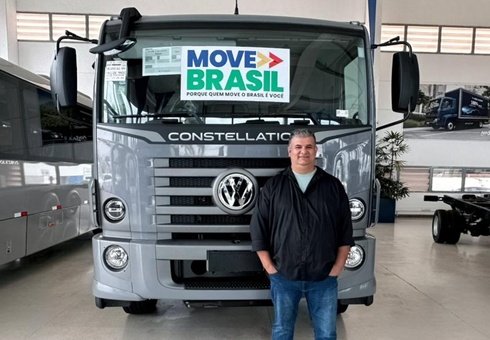 O caminhoneiro autônomo de Brasília Márcio de Souza e Silva (foto em destaque), 51 anos, está comemorando uma conquista que parecia distante: a compra do primeiro caminhão zero-quilômetro. O veículo, um VWCO Constellation 26.260, foi comprado na concessionária Nasa, da Volkswagen Caminhões e Ônibus, de Brasília, por meio do programa federal Move Brasil, que disponibilizou R$ 10 bilhões para pessoas físicas e jurídicas do transporte rodoviário de cargas renovarem suas frotas.