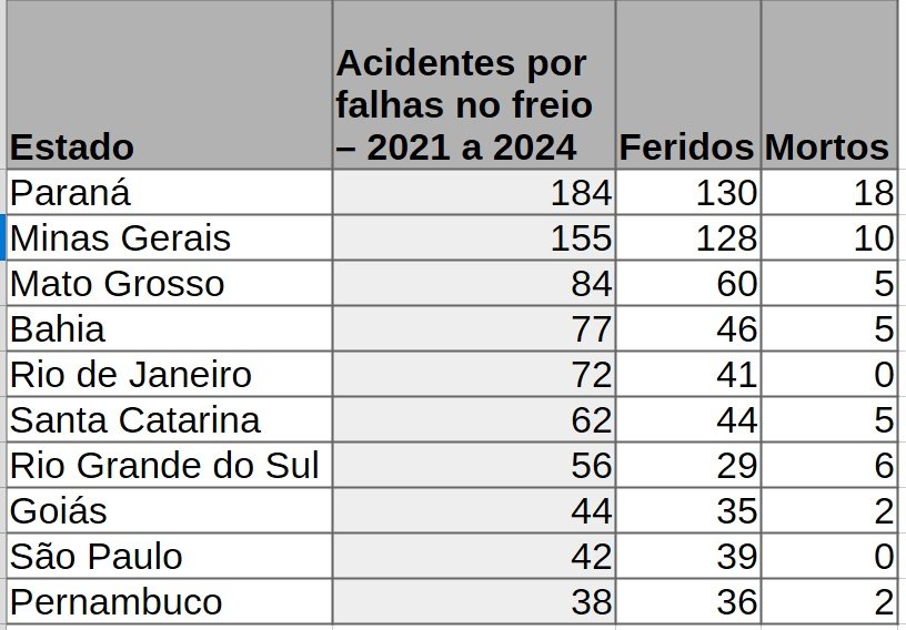 Um levantamento feio pela Polícia Rodoviária Federal (PRF), a pedido da Revista Carga Pesada, mostra que o Paraná é o campeão de acidentes de caminhões provocados por falhas em freio. Entre 2021 e 2024, foram registrados 184 acidentes desse tipo nas BRs paranaenses, com 18 mortes. Minas Gerais aparece na sequência, em segundo lugar, com 155 ocorrências envolvendo falhas nos freios de caminhões e dez mortes no período analisado. Mato Grosso ocupa a terceira posição, com 84 sinistros e cinco óbitos associados a esse tipo específico de problema mecânico.