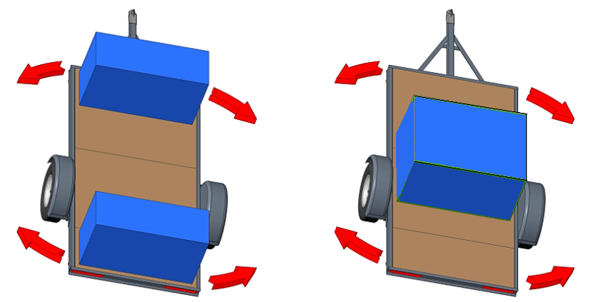 Durante a viagem de fato ocorrem forças que podem causar esses movimentos de torção. Por isso é importante tornar “mais fácil” para o reboque o seu retorno à estabilidade. Quanto maior a inércia rotacional (com os pesos distantes do centro da carroceria – na figura acima – da esquerda) mais difícil para o reboque “retornar ao normal”.