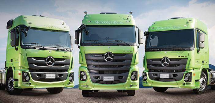 A nova família Actros com a versão de 510 cv ao centro
