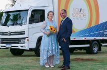 A empresária Márcia Staudt chegou na cerimônia dirigindo um VW Delivery 6.160 A empresária Márcia…
