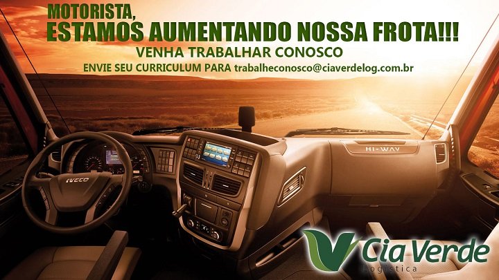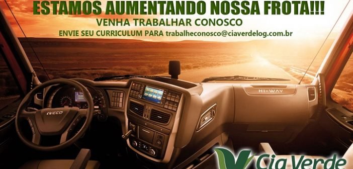 A Cia Verde Logística de Araucária, PR, empresa com 13 anos de atuação no mercado, está contratando motoristas carreteiros. Os interessados poderão encaminhar e-mail para: trabalheconosco@ciaverdelog.com.br, ou comparecer a empresa nas quartas e sextas-feiras (exceto feriados) as 09h00 para processo seletivo.