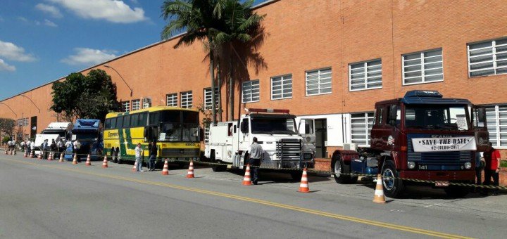 Nesta sexta (2 de junho) faltavam, exatos, 30 dias para os 60 anos de presença da Scania no Brasil, que serão comemorados no dia 2 de julho. Para celebrar esta contagem regressiva, os colaboradores da fábrica de São Bernardo do Campo (SP), tiveram uma atração especial na hora do almoço. Cinco veículos antigos da marca formaram uma pequena, mas disputada, exposição. Foi um momento para exaltar a paixão pela marca.