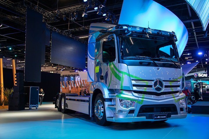 “O eActros está disponível somente para a Europa nesse momento e não será comercializado no Brasil ainda. Nosso objetivo ao trazer este moderno caminhão para o evento é ampliar o debate sobre veículos elétricos”, afirma Achim Puchert, presidente da Mercedes-Benz do Brasil & CEO América Latina.