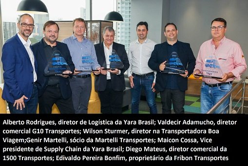 A Yara, líder mundial em nutrição de plantas, promoveu, em 27 de março, a primeira edição do Prêmio Transportadora Yara 2022, um encontro entre representantes de diversas transportadoras parceiras da empresa. O objetivo da premiação é reconhecer e celebrar as empresas da cadeia logística que tiveram melhor desempenho no ano de 2022 em critérios como: segurança, atendimento aos requisitos de homologação e processo de pagamento, além de alto nível de serviço de execução.