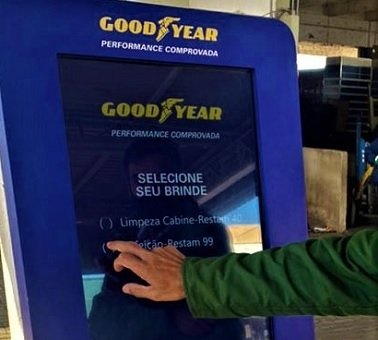 O motorista participante deve se cadastrar no totem de autoatendimento Goodyear e escolher o seu benefício. Será disponibilizado um benefício por usuário cadastrado.
