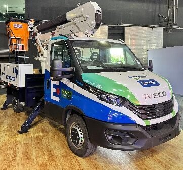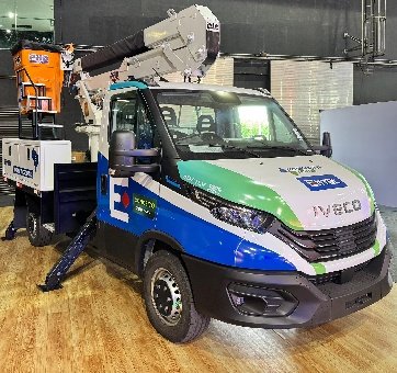 Modelo 100% elétrico, com implemento cesto aéreo para manutenção em redes elétricas, representa avanço da marca na eletrificação