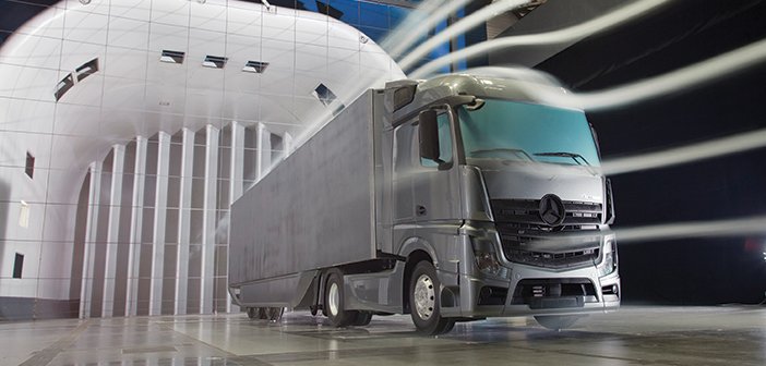 O novo rodoviário Actros, lançado na Europa no ano passado, também foi destaque com o novo sistema Active Brake Assist (Sistema de Assistência Ativa de Frenagem), que está em sua terceira geração e proporciona uma manobra de frenagem autônoma para evitar a colisão com obstáculos parados. Outra novidade é o Predictive Powertrain Control – PPC (Controle Preventivo do Trem de Força), que liga as informações do GPS sobre a rota à frente com o sistema de mudança de marchas do caminhão. Assim, o veículo se mantém sempre na marcha que resulta na máxima economia de combustível. Conjugando os sistemas EGR e SCR com o filtro de partículas, o Actros Euro 6 ficou até 4,5% mais econômico que a versão anterior.