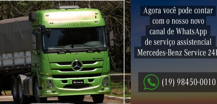Com o objetivo de estar sempre próxima de seus clientes, onde quer que eles estejam, a Mercedes-Benz acaba de iniciar atendimento por WhatsApp para motoristas de caminhões e ônibus que precisarem do Service24h. Para utilizar esse novo serviço, o profissional da estrada só precisa enviar uma mensagem ao número (19) 98450-0010 e aguardar instruções, que chegam instantes depois.
