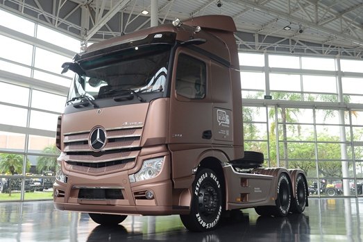 No estande da marca na Fenatran está exposta uma versão do Actros Evolution com estes itens do “Estrela Delas”. Um modelo 2553 6×2, com motor Mercedes-Benz OM 471 LA de 530 cavalos, o mais potente da marca no Brasil, câmbio automatizado Mercedes PowerShift Advanced G291 de 12 marchas, tomada de força, suspensão metálica, rampa de quinta roda, geladeira, MirrorCam, painéis digitais e a cor rosa magnólia, ícone visual do Actros. “Estrela Delas”.