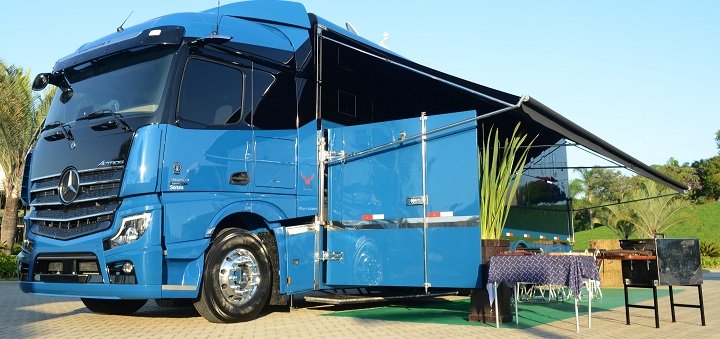 “Escolhi o Novo Actros para motorhome porque sou Mercedeiro e também pela tecnologia e beleza deste caminhão”, destaca o diretor Fernando Fagundes. “Nós temos uma forte ligação com os caminhões da marca. Há 36 anos, meu pai iniciou a empresa com um modelo 1313. Sempre acompanhamos a evolução dos caminhões Mercedes-Benz, como o Novo Actros, que também compõe nossa frota de rodoviários, e o Arocs 8×4. Aliás, somos o primeiro cliente a receber este novo extrapesado para severas operações off-road da mineração e construção pesada”.