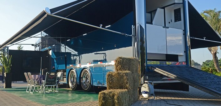 · Na parte traseira do motorhome há uma cavaleira para dois animais, climatizada, com câmeras de monitoramento.