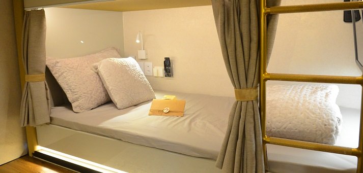 · Ambiente de beliches com slide out, dois beliches de solteiro com TV para cada cama, luz de leitura, céu estrelado, uma janela por cama, móveis laqueados, ar condicionado espelhado e piso vinílico de alta resistência.