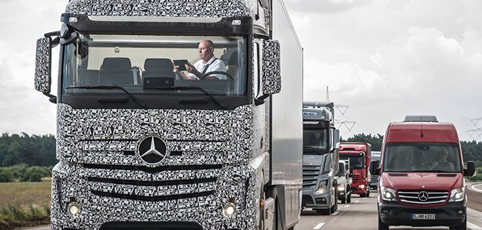 A Mercedes-Benz apresentou no dia 4 de julho, em Magdeburg, na Alemanha, o “Future Truck 2025” – um caminhão Actros 1845 com sistema autônomo de direção, que o permite rodar a 80 km/h em estradas de longa distância sem que o motorista precise dirigir, embora tenha que estar presente.
