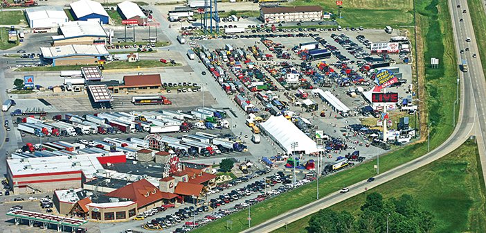 Na comitiva estava o mineiro Wagner Henriques Xavier, proprietário do Posto Profetas, que fica no km 614,6 da BR-040, município de Congonhas (MG). Segundo ele, o Iowa 80 é tido como o maior posto do mundo. Seus números são gigantescos. O empreendimento ocupa 340 mil metros quadrados, equivalente a 34 campos de futebol, é capaz de acolher 3.500 carretas clássicas americanas (cavalo 6×4 + semirreboque de dois eixos), além de 1.500 automóveis. “É grande desse jeito porque fica numa região sujeita a nevascas, que impedem muitos caminhões a continuar viagem”, diz Xavier. A receita do posto provém da venda de mais de 8 milhões de litros de combustíveis por mês, sendo mais de 80% relativos ao diesel, além de um mega-truckcenter. “Ali o caminhoneiro pode resolver todas as suas necessidades, seja para o caminhão ou para si.” Com a ressalva de que “tudo é pago”. A loja de peças, acessórios e pneus tem quatro mil metros quadrados de galpão e dispõe de equipe de mecânicos e instaladores. Na pista há um lavador de caminhão, do tipo lava-jato, que cobra US$ 80 por hora. Utiliza-se de água reciclada e o serviço só por fora leva 20 minutos.
