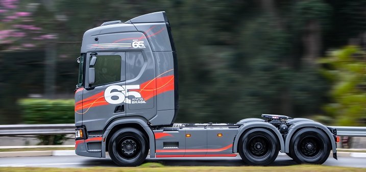 Dia 2 de julho, a Scania completou 65 anos de presença no País. Para comemorar esse Jubileu de Safira, a montadora apresentou ao mercado a Edição Comemorativa de 65 anos de Brasil. A fabricante preparou um pacote atrativo com diversas vantagens, dentre as quais pagar a primeira parcela do financiamento apenas em 2023.