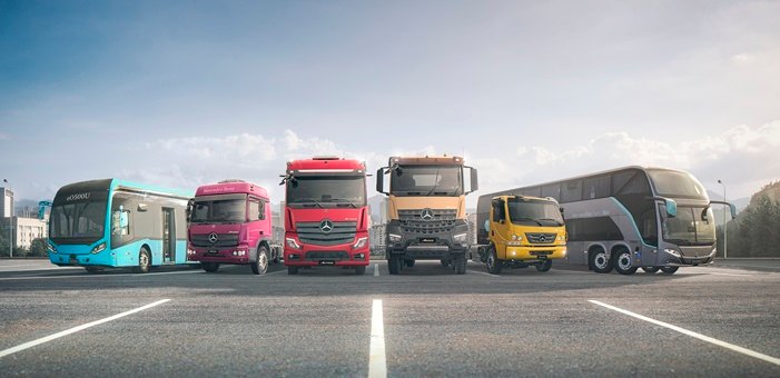 O Showroom Virtual Mercedes-Benz inclui toda a linha de caminhões zero km, que abrange as famílias Accelo (segmento de leves e médios), Atego (médios, semipesados e extrapesados off-road), Actros (extrapesados on e mix-road) e Arocs (extrapesados off-road). Também engloba o portfólio de ônibus zero km, com modelos urbanos, rodoviários, fretamento, turismo e transporte escolar.