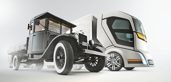 Detalhe lateral destaca a linha do tempo dos caminhões da série Time Machine