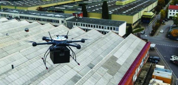 O drone de seis motores pode transportar até cinco quilos de peso por via aérea – ou três quilos de mercadorias depois de levar em consideração as garras de fixação e a respectiva embalagem do produto. Essas características são suficientes para o transporte da grande maioria das peças de manutenção e ferramentas utilizadas nas instalações da empresa. A segurança também é uma prioridade máxima no transporte de mercadorias por drone. O hexacopter voa a 30 km/h principalmente sobre os telhados dos edifícios das fábricas e apenas atravessa entradas e calçadas onde não há alternativa. A bateria recarregável, que fornece cerca de 30 a 40 minutos de operação de voo elétrico, também é redundante, assim como as hélices e os motores. O drone é, portanto, manobrável, mesmo que um motor falhe.